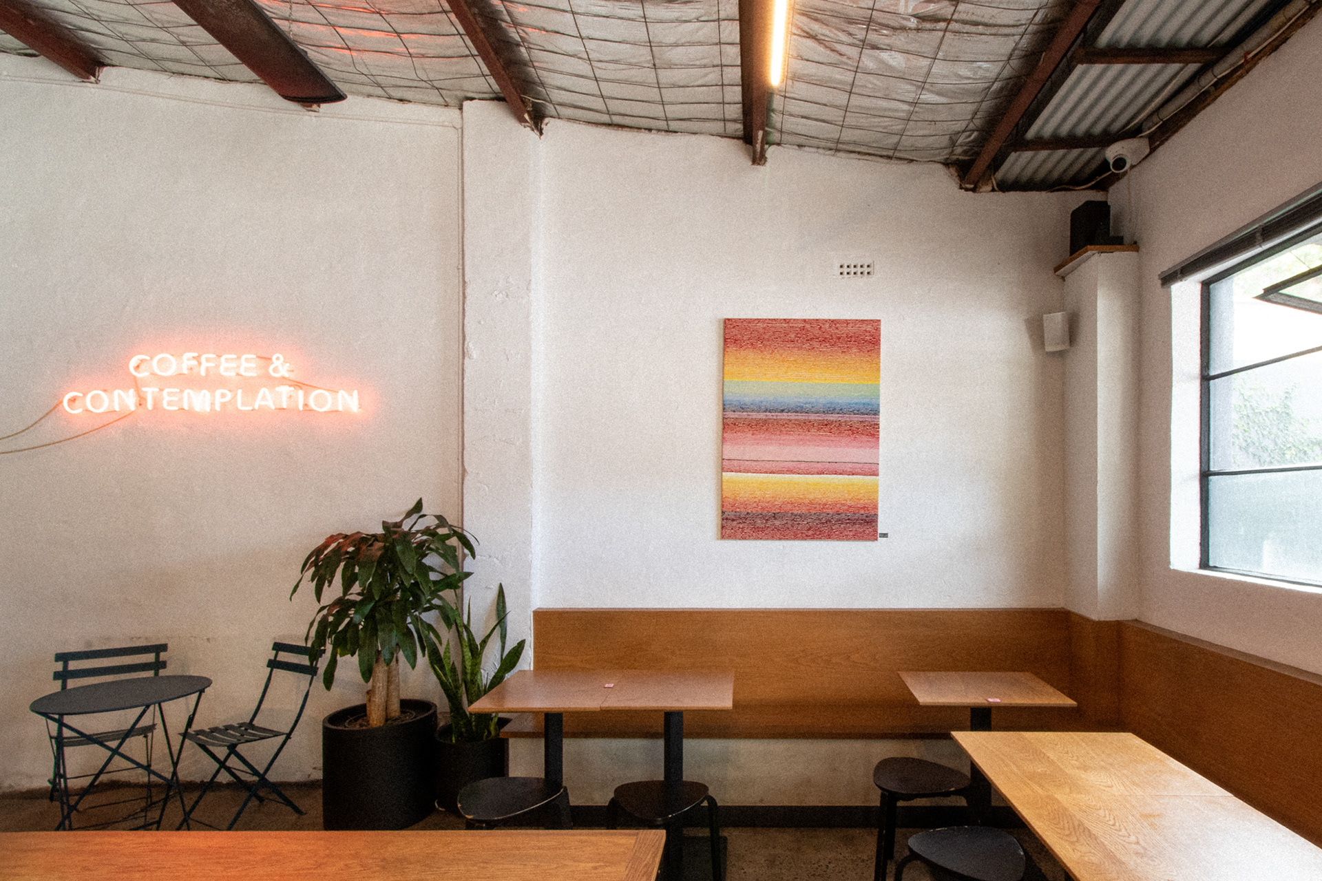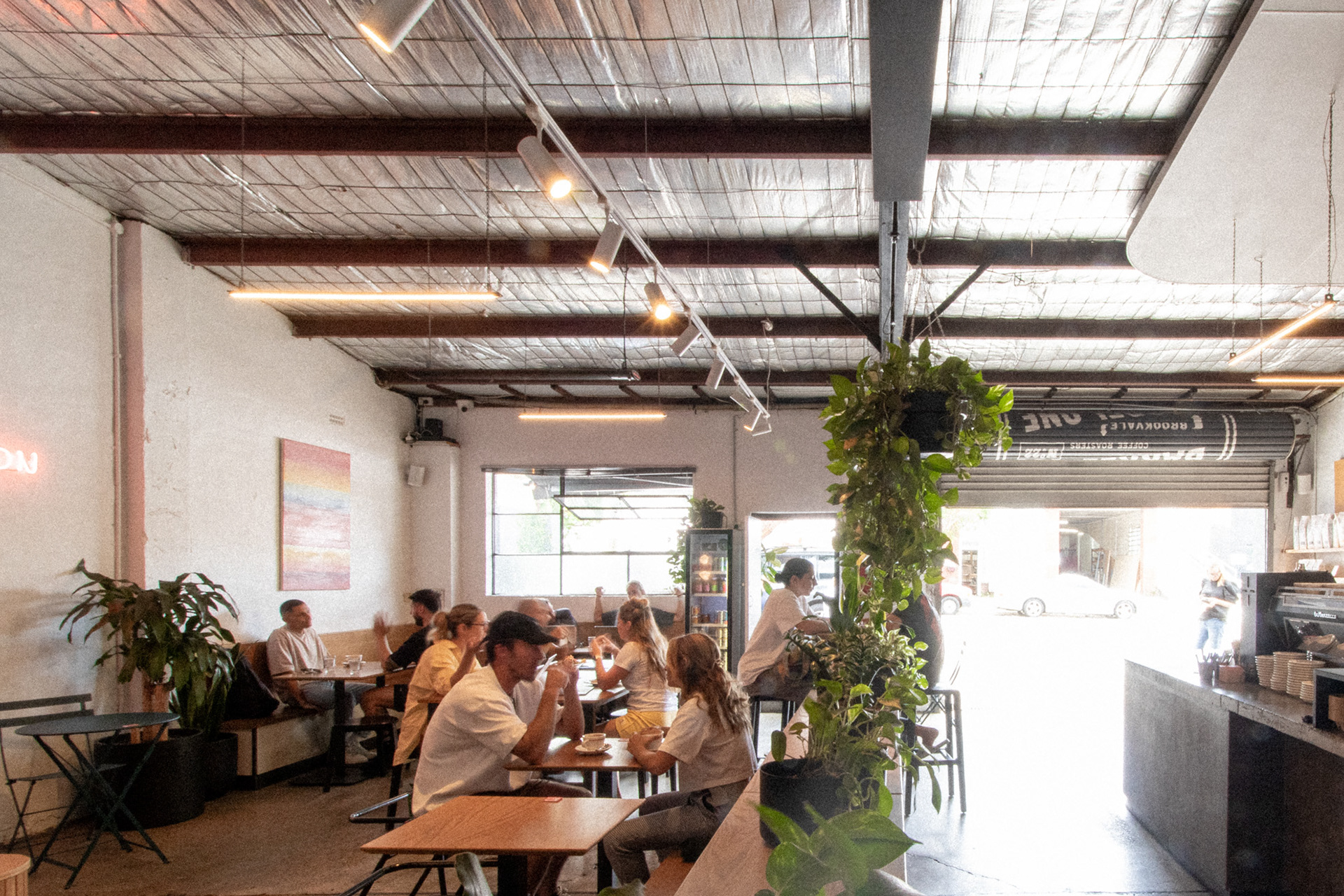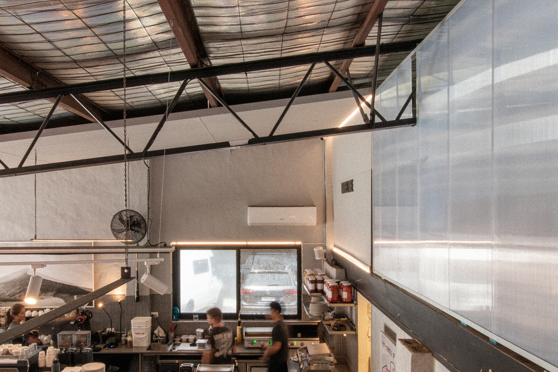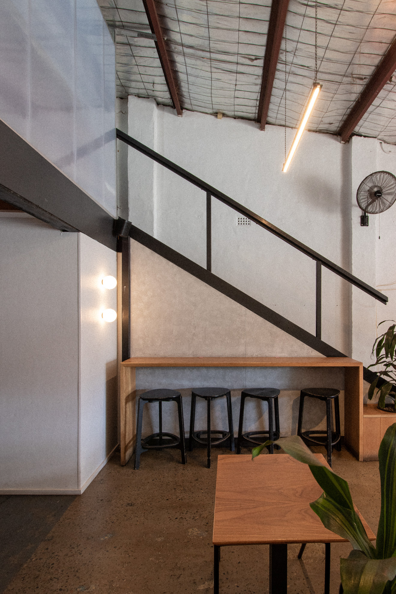 This was the fourth venue designed for Barrel One Coffee Roasters, located in Brookvale. This venue is Barrel One's first and flagship venue, originally fit out over 10 years prior. The location needed a refresh to finishes and a few functional adjustments for process and staff flow. Much of the original fitout was retained but new finishes and fittings were introduced to bring the venue in line with newer venues. Located in a warehouse within an industrial area, this aesthetic was respected, opting for cool concrete tones and steel highlights. Smart choices had to made in terms of materials and systems to ensure shut down of the premises for renovation would be limited to a few days. The project also included renovation of external finishes, external dining area planning and design of elements such as external benches and umbrellas.