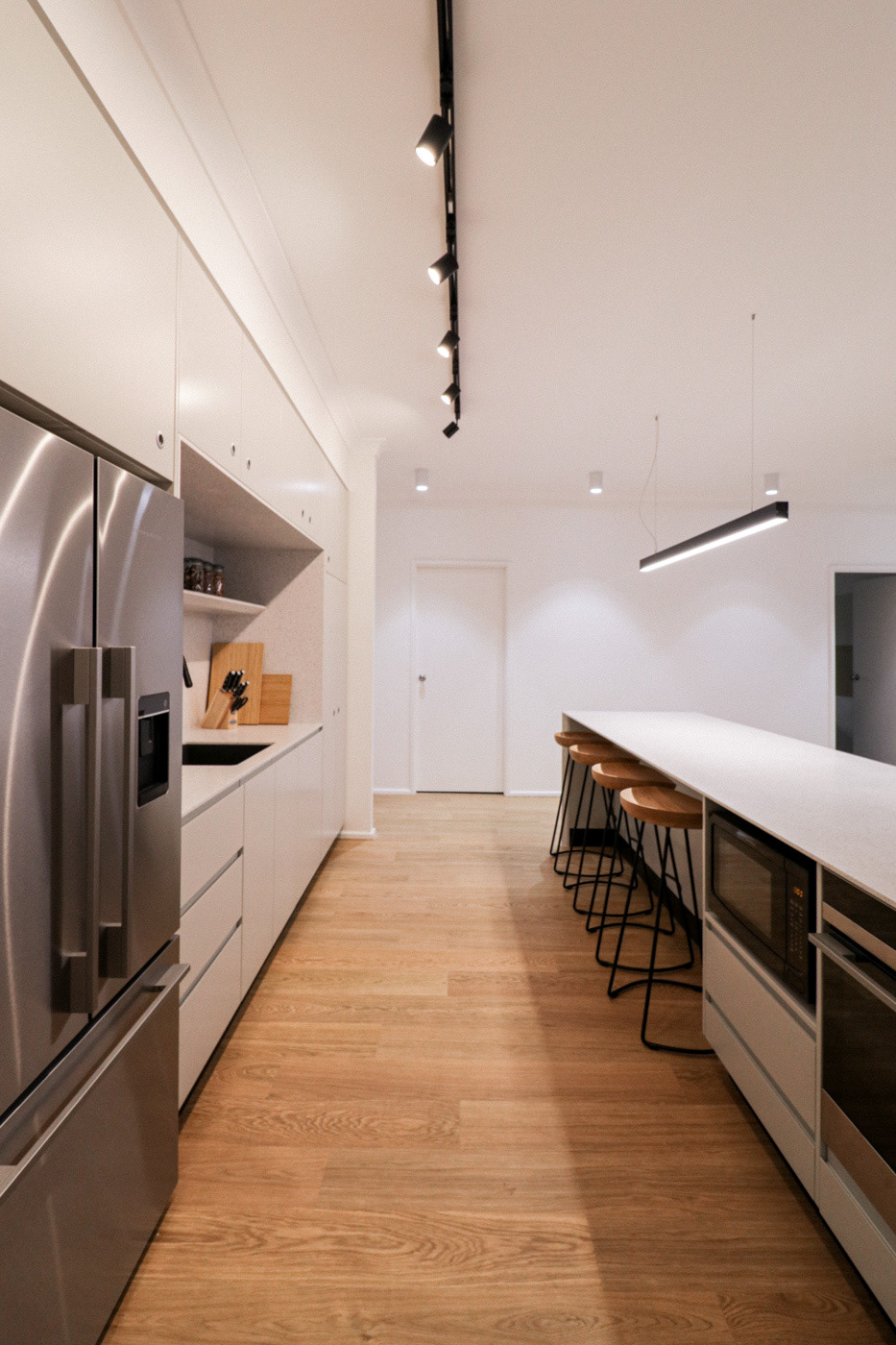 Wesfil's Brookvale office space was developed to provide a professional environment for the company's administration staff and their guests. Workspaces were opened up to connect with the office's new kitchen and breakout area to encourage a more transparent and collaborative work culture. Bright whites were used to make up for limited access to natural light, with accent tones of black and oak to ensure the design's longevity. My Interior Design services included concept design through to construction documentation, including full selection of furniture & fittings.