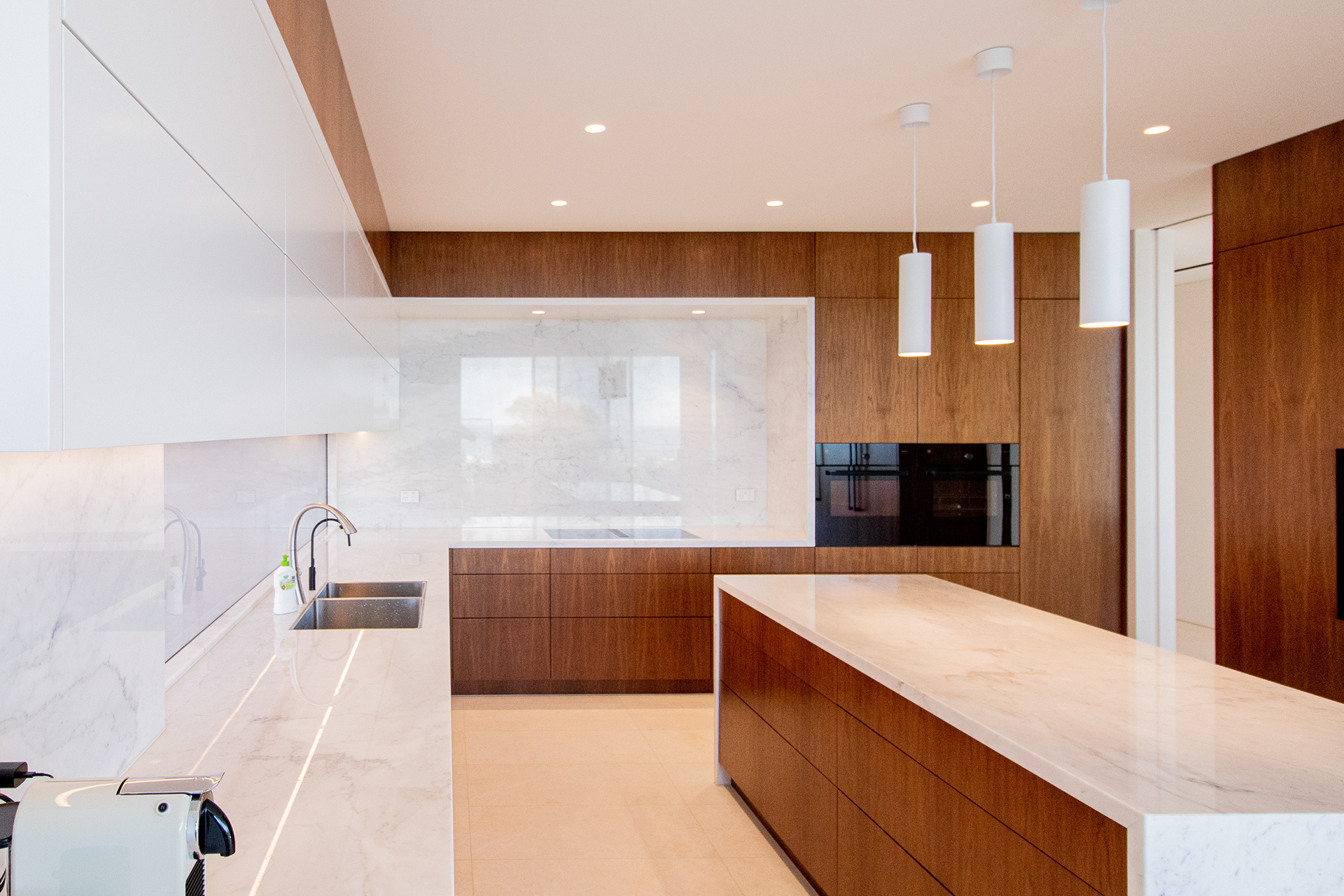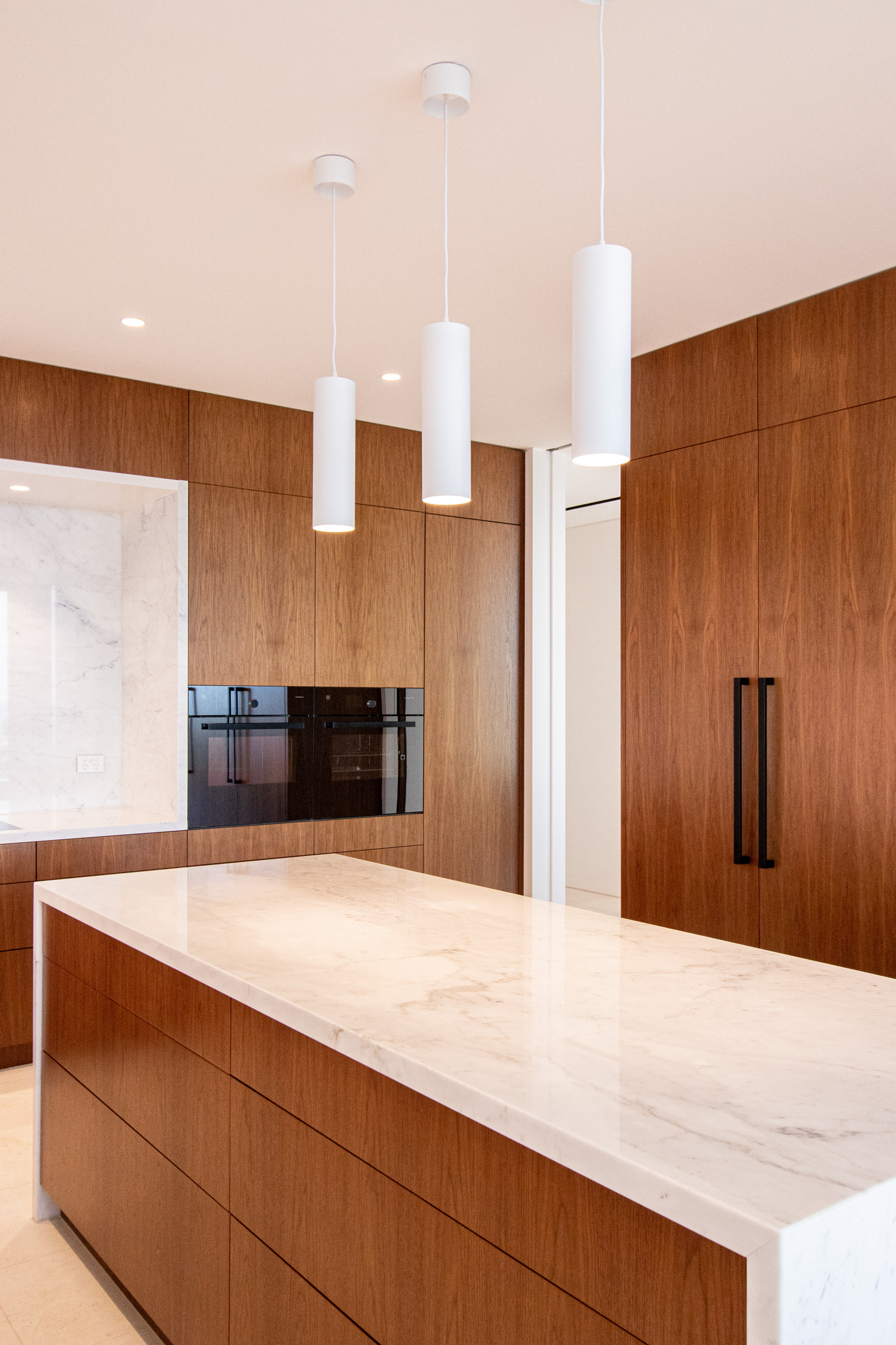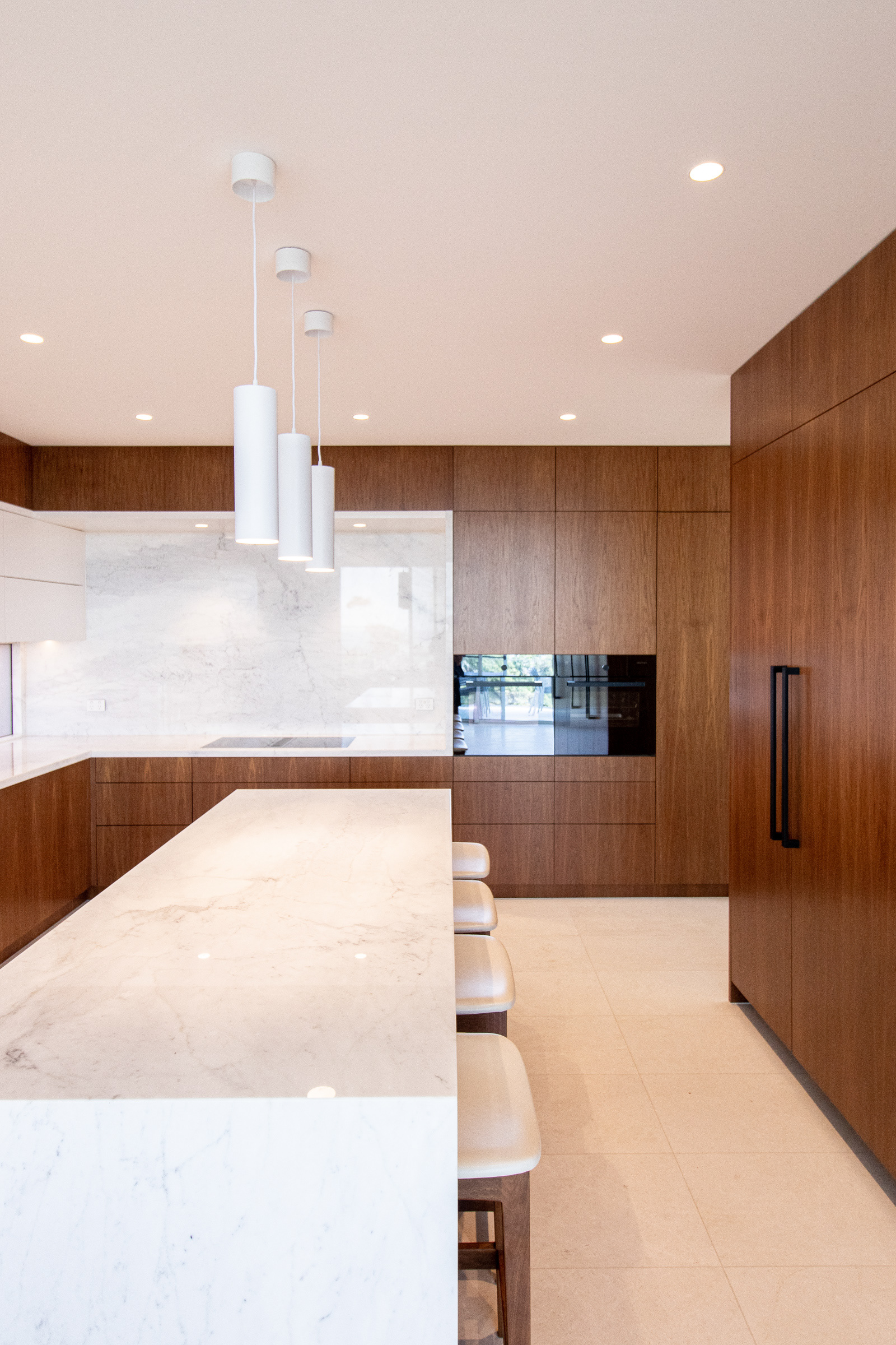This project involved architectural and interior design services to take the house from DA stage through to completion. The home features marble floors throughout, floor to ceiling double glazed stacker doors, timber fireplace, walnut veneer kitchen and smart home features. The house contains 5 Bedrooms, all with walk in wardrobe and ensuite, additional bathroom, 2 laundries, retreat, bar, 3 living areas, 2 kitchens, a cinema room, office and multi level balconies.