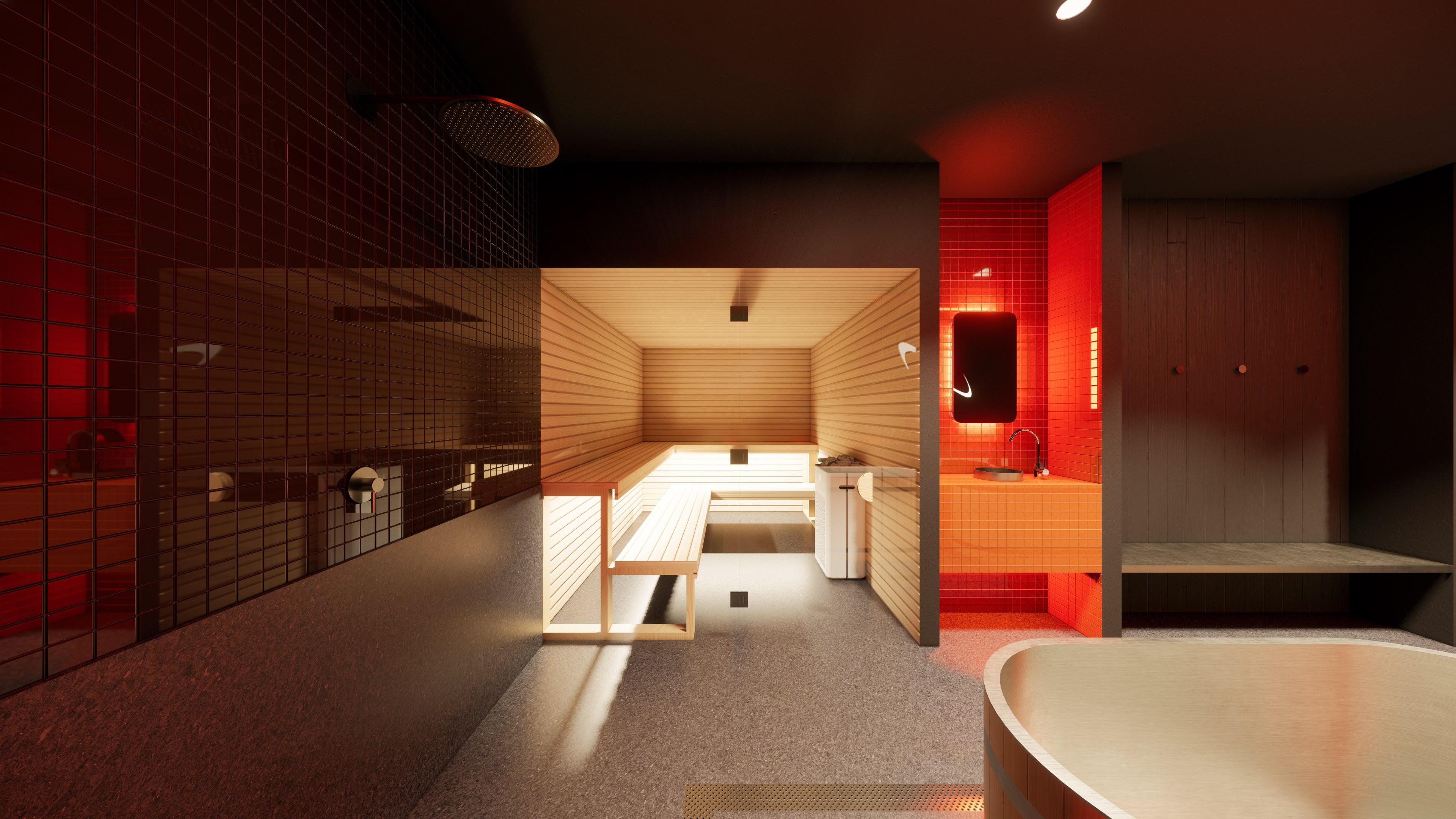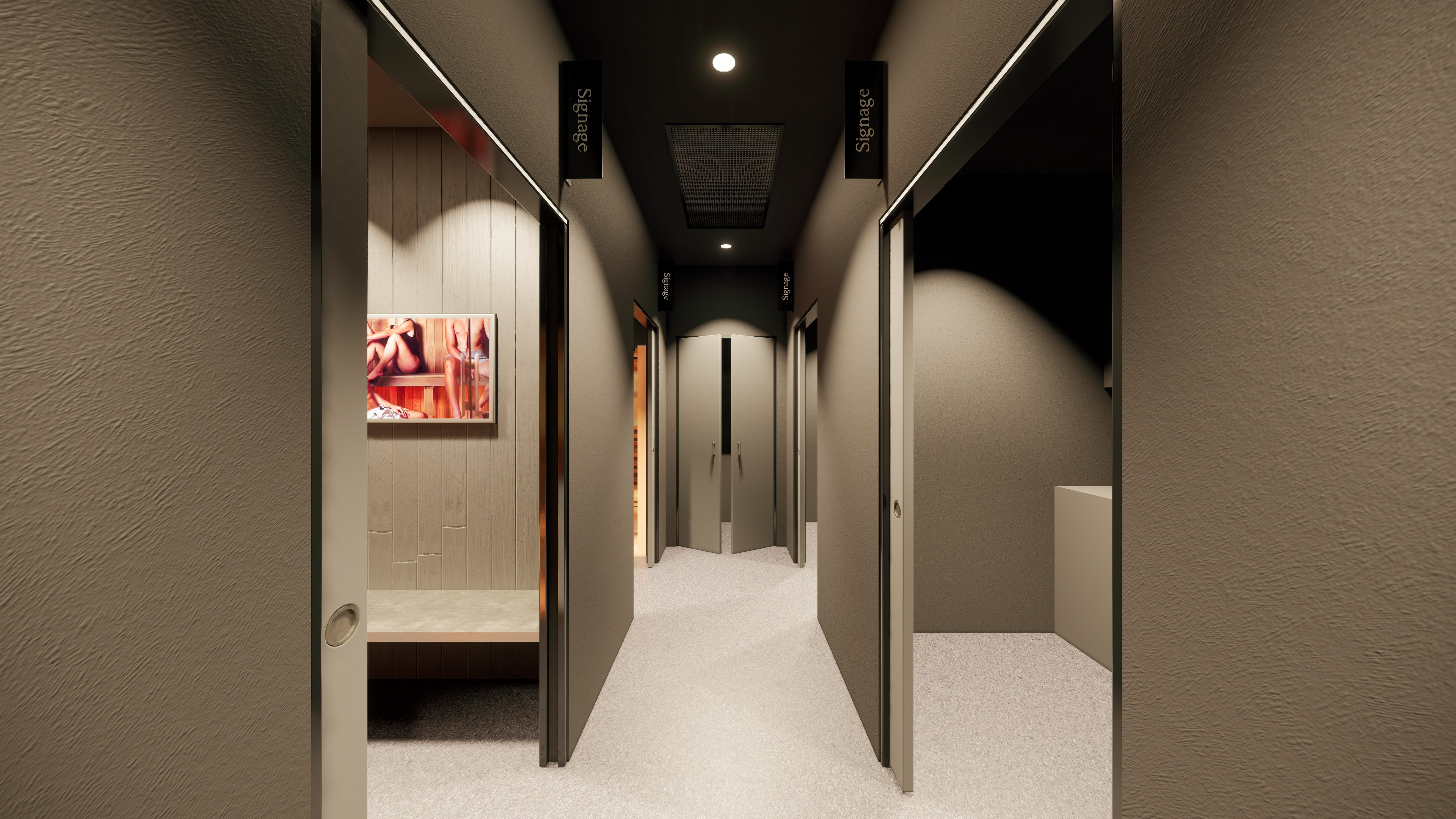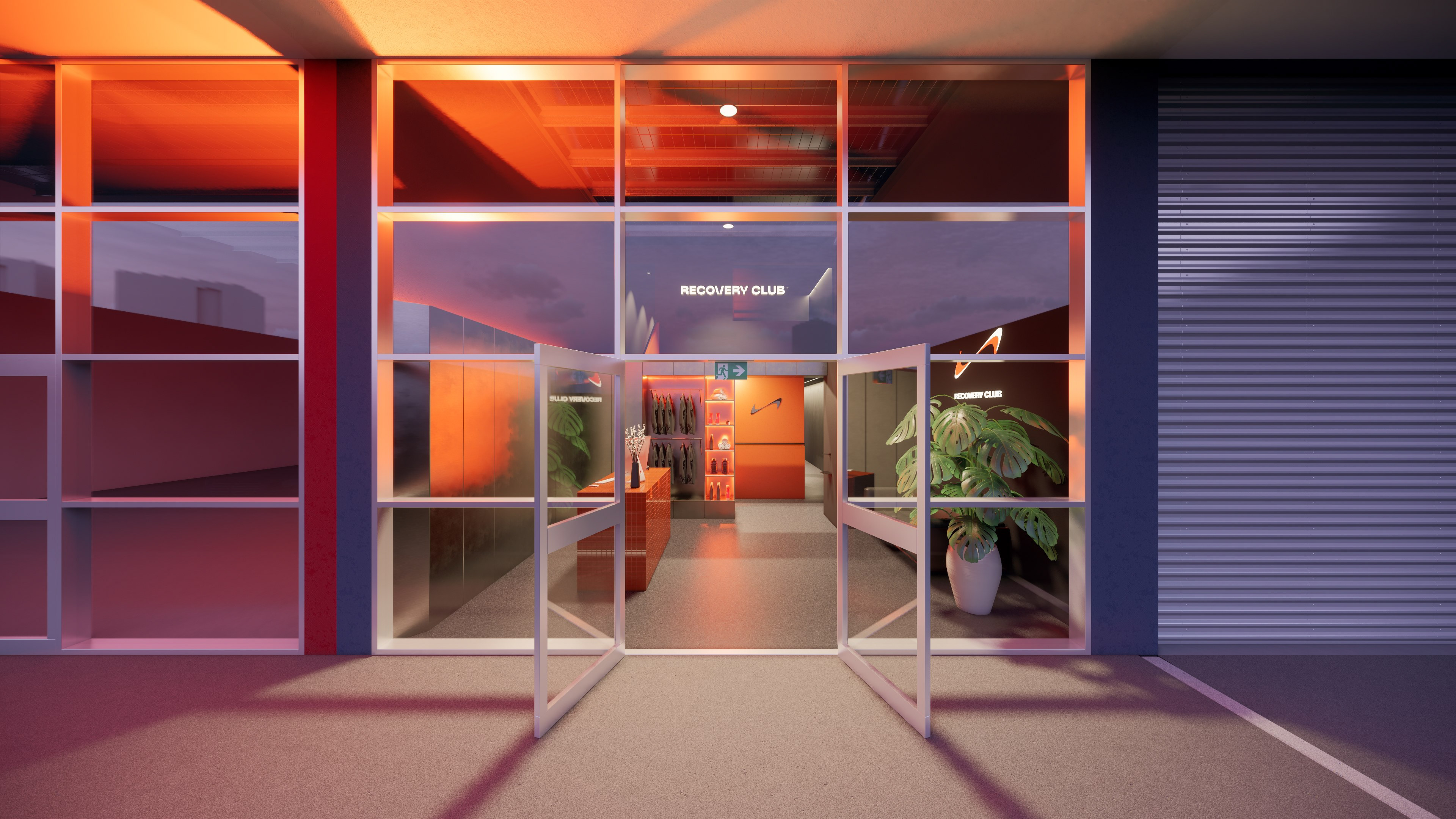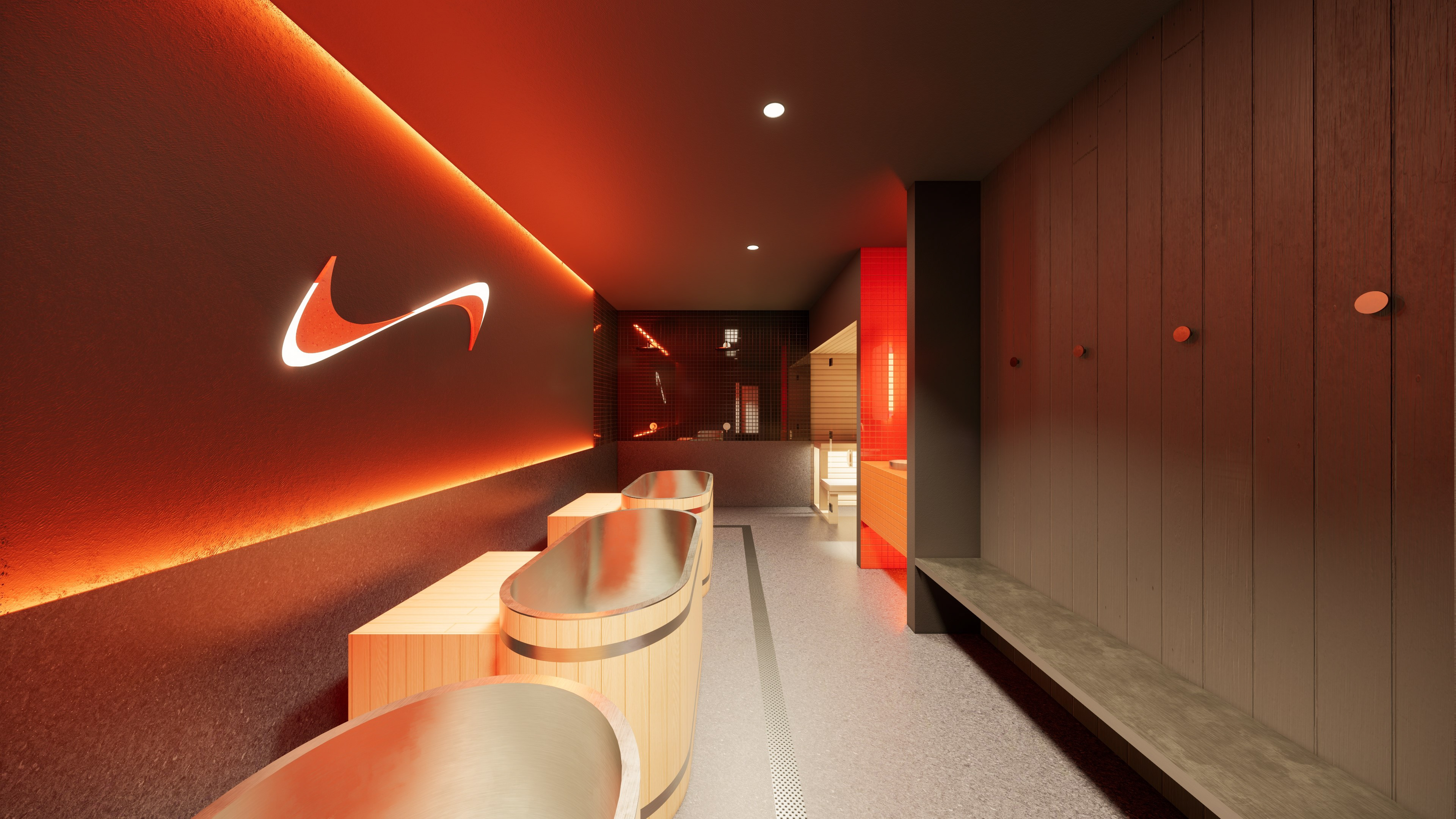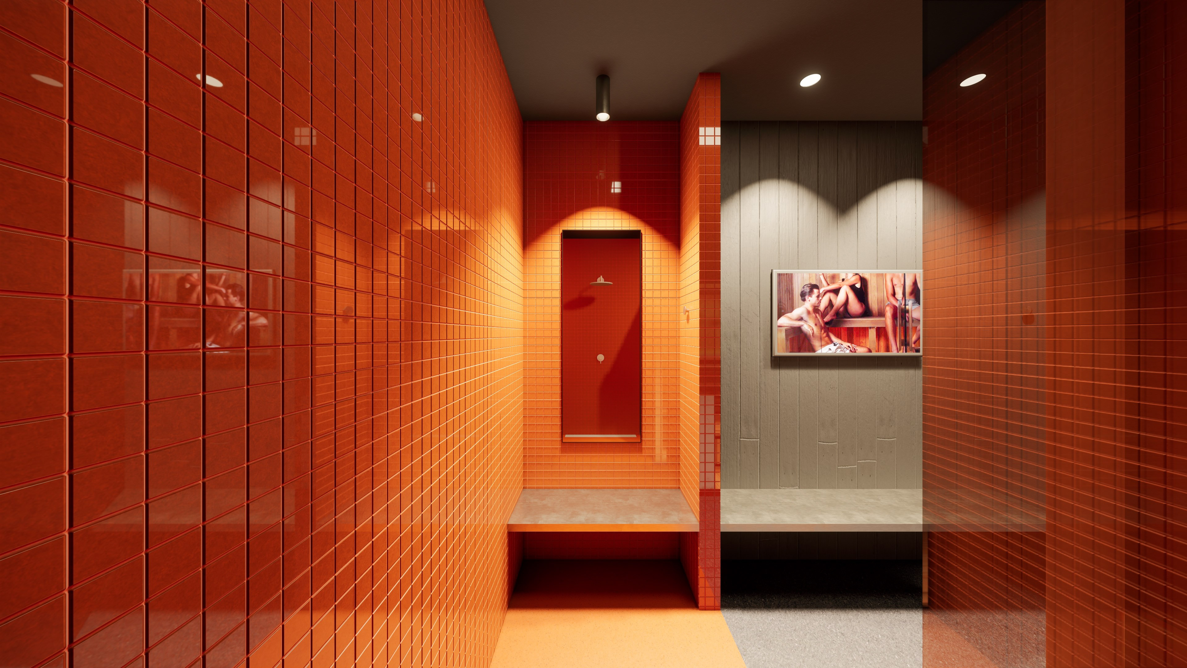 Tasked with the end-to-end brand architecture and interior fitout, the objective for Recovery Club was to move away from the clinical sterile tropes of modern wellness in favour of a moody, athletic sanctuary. Physically, the space is dictated by the brand’s signature ‘Sinopia’ colour, a feature brick red that speaks to infrared heat and provides a high-vis wayfinding tool through the darkened, monolithic interior. In the reception, a grid-tiled, monolithic desk serves as a structured anchor, juxtaposed against the diffuse, atmospheric glow of the corridors. The material palette reinforces the sensory journey of temperature contrast therapy. Handcrafted cedar saunas offer a warm, tactile envelope, while brushed stainless steel and raw concrete evoke the bracing, industrial chill of the ice baths. By treating the brand and the fitout as a singular, cohesive organism, Recovery Club offers a curated environment where the ritual of recovery becomes a shared social event.