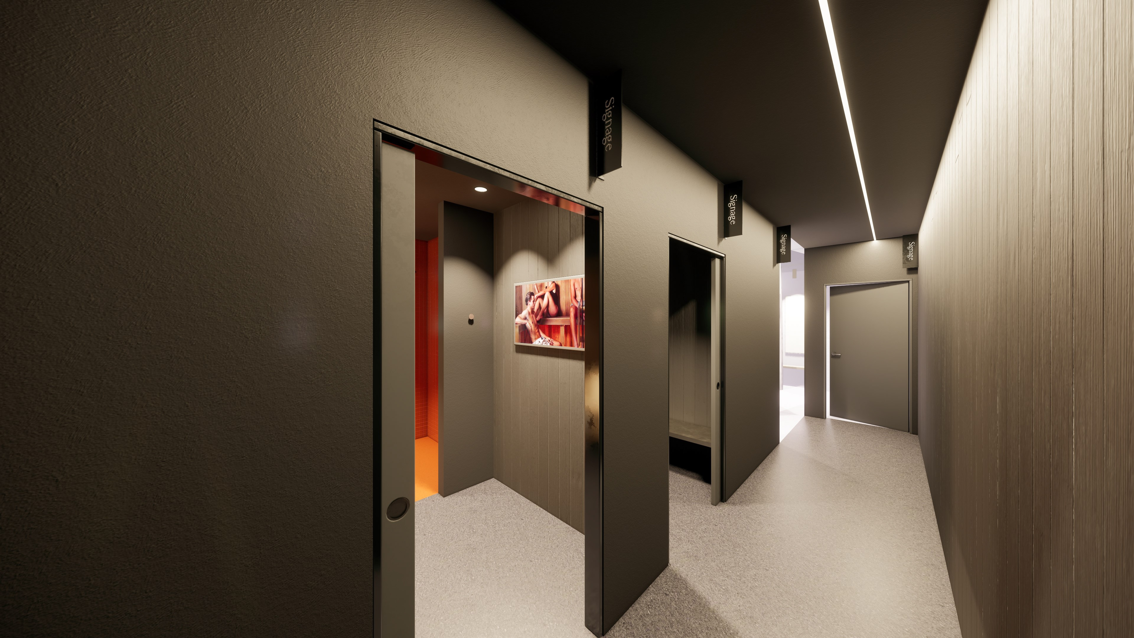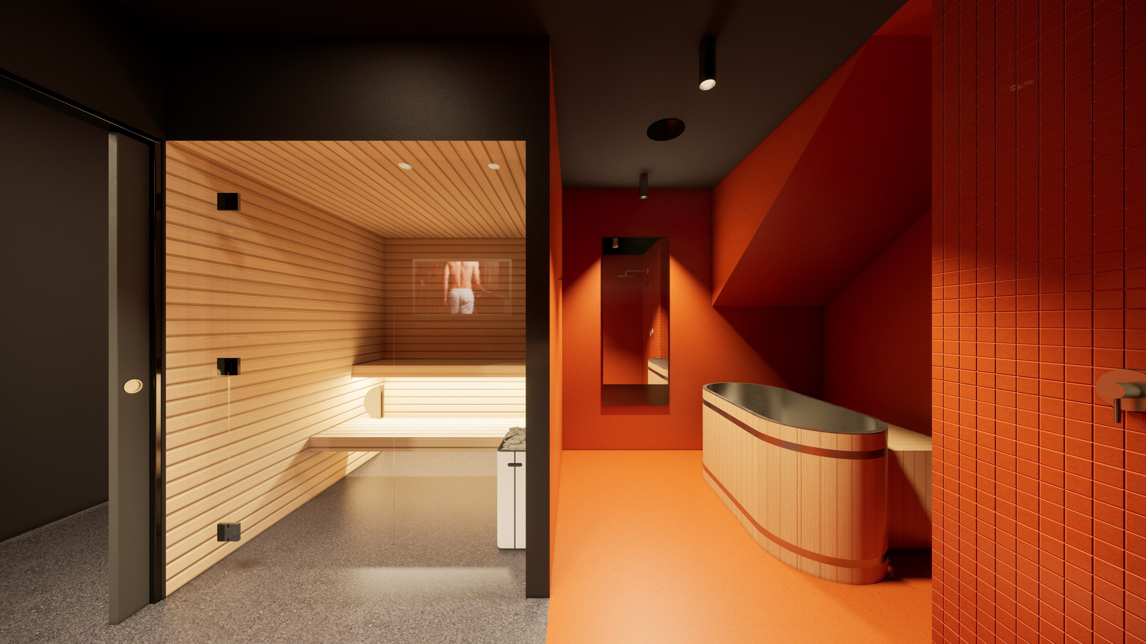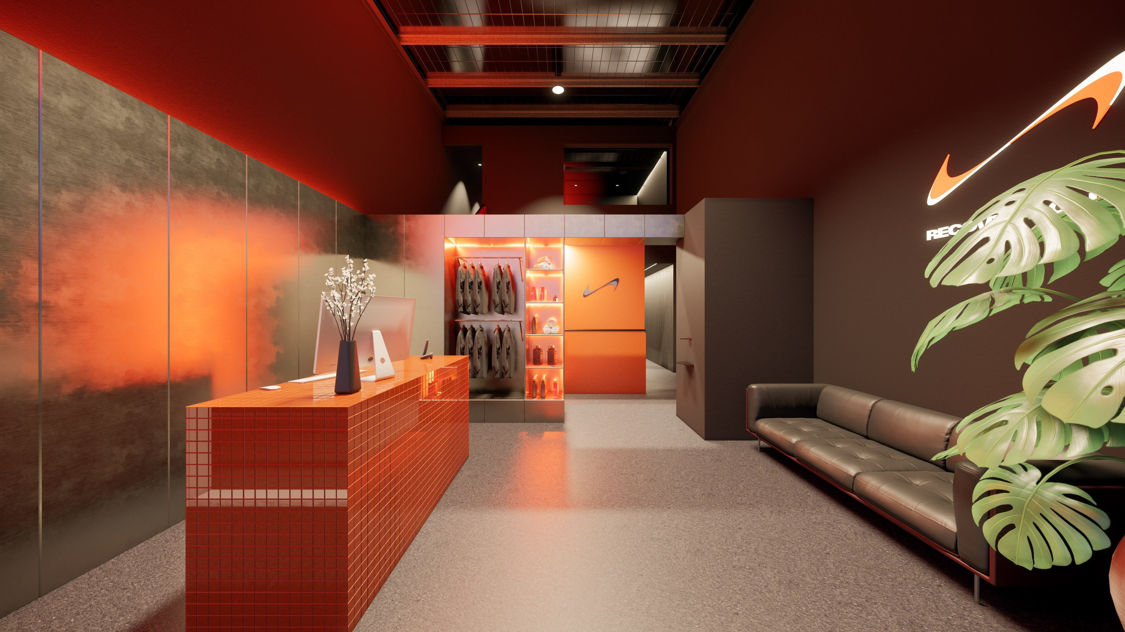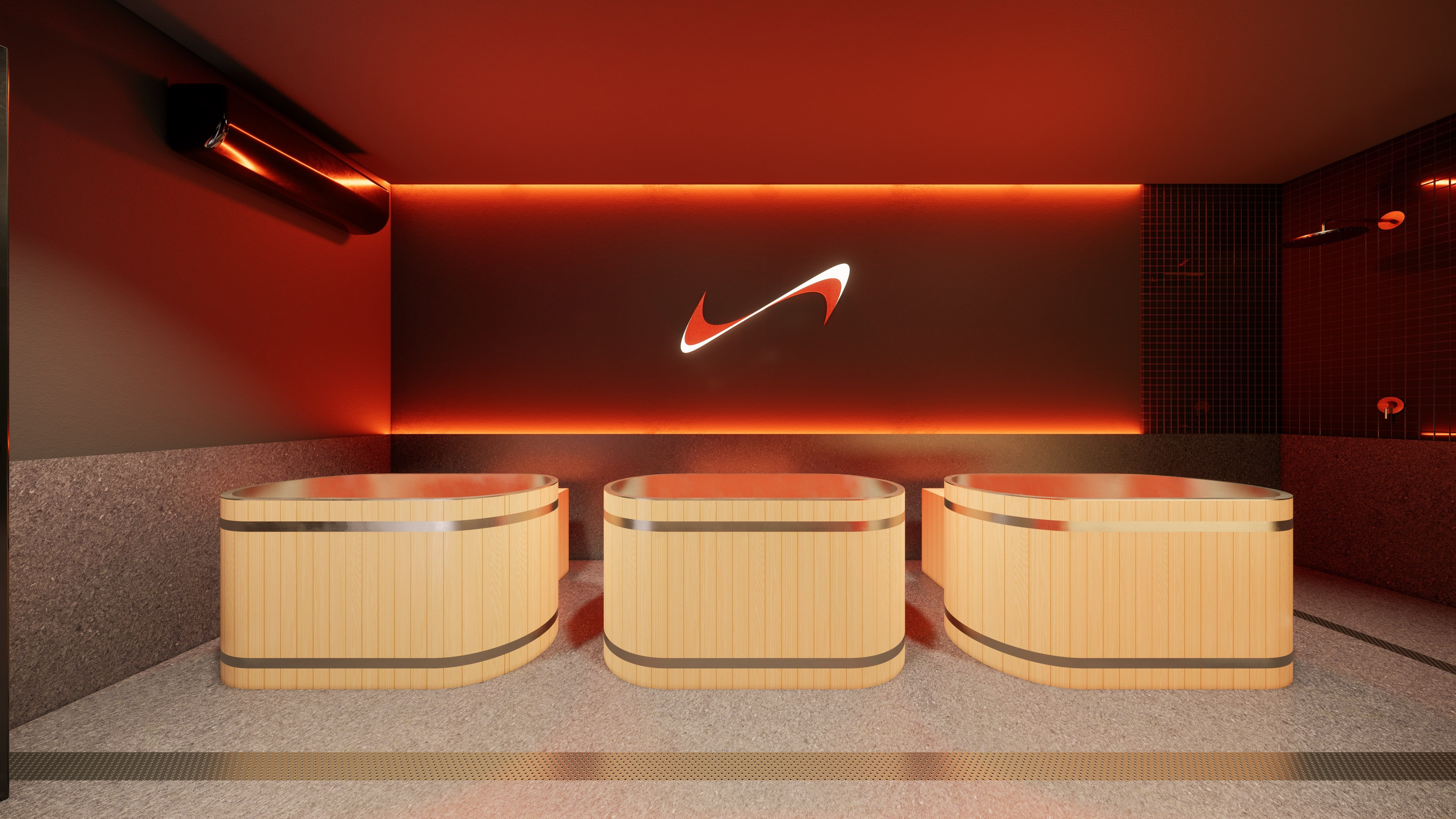 Tasked with the end-to-end brand architecture and interior fitout, the objective for Recovery Club was to move away from the clinical sterile tropes of modern wellness in favour of a moody, athletic sanctuary. Physically, the space is dictated by the brand’s signature ‘Sinopia’ colour, a feature brick red that speaks to infrared heat and provides a high-vis wayfinding tool through the darkened, monolithic interior. In the reception, a grid-tiled, monolithic desk serves as a structured anchor, juxtaposed against the diffuse, atmospheric glow of the corridors. The material palette reinforces the sensory journey of temperature contrast therapy. Handcrafted cedar saunas offer a warm, tactile envelope, while brushed stainless steel and raw concrete evoke the bracing, industrial chill of the ice baths. By treating the brand and the fitout as a singular, cohesive organism, Recovery Club offers a curated environment where the ritual of recovery becomes a shared social event.
