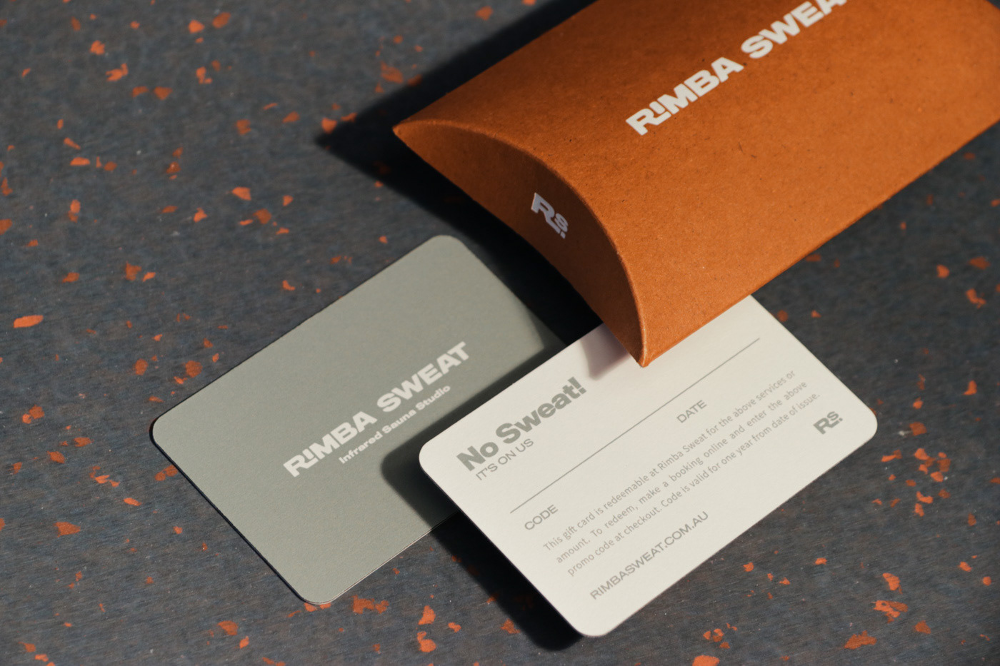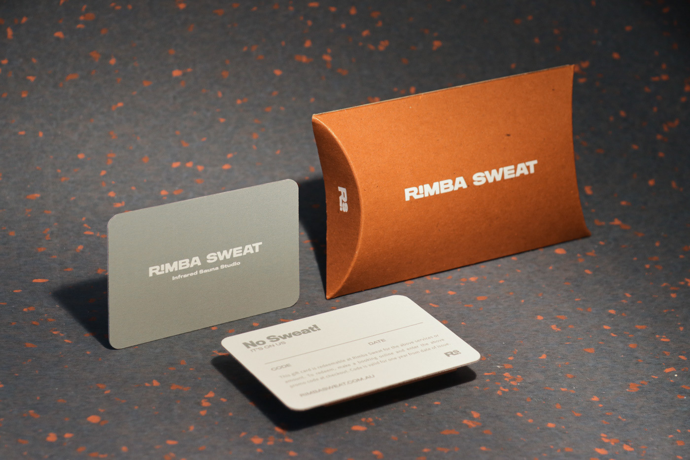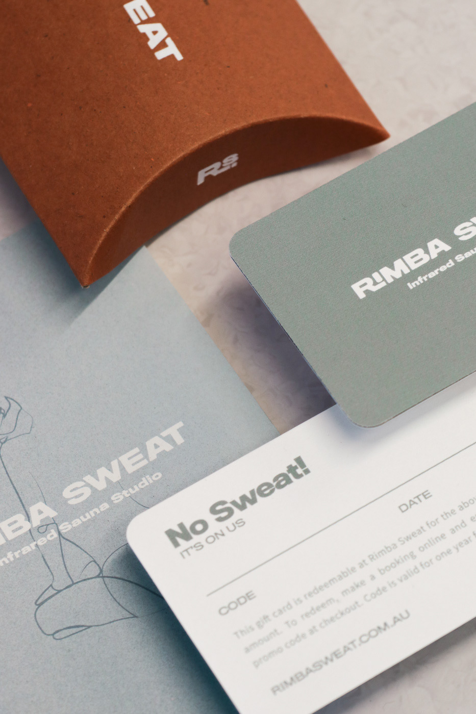 I carried out Brand Design, print design and Web design & development for Rimba Sweat, an infrared Sauna Studio located on Sydney's Northern Beaches. This included developing the Brandmarks, brand typography, colours & imagery, designing gift cards, pillow boxes and promotional pamphlets. Gift cards - CMYK Offset print on triplex cardstock Pillow Boxes - Gold Foil print on Recycled card pillow box Pamphlet - CMYK Offset print on Envirocare Recycled Cardstock
