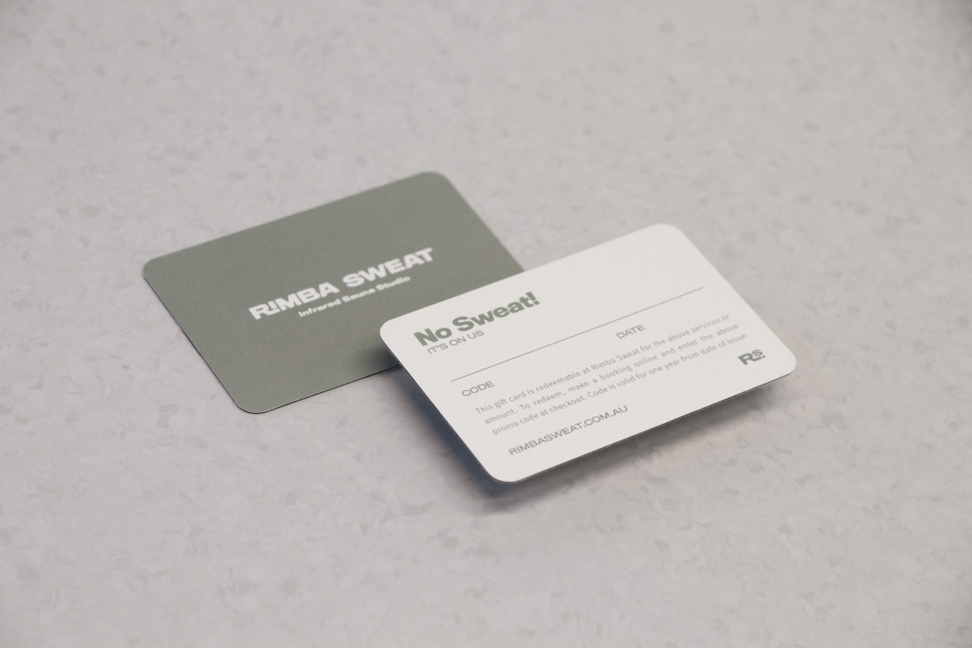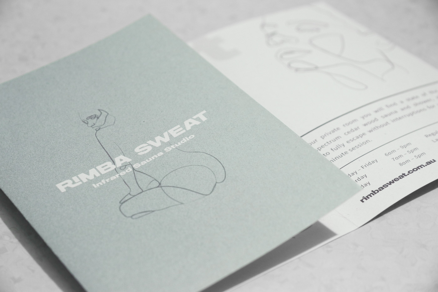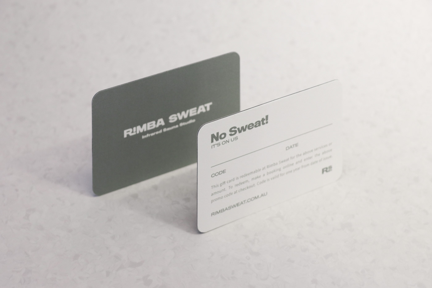 I carried out Brand Design, print design and Web design & development for Rimba Sweat, an infrared Sauna Studio located on Sydney's Northern Beaches. This included developing the Brandmarks, brand typography, colours & imagery, designing gift cards, pillow boxes and promotional pamphlets. Gift cards - CMYK Offset print on triplex cardstock Pillow Boxes - Gold Foil print on Recycled card pillow box Pamphlet - CMYK Offset print on Envirocare Recycled Cardstock